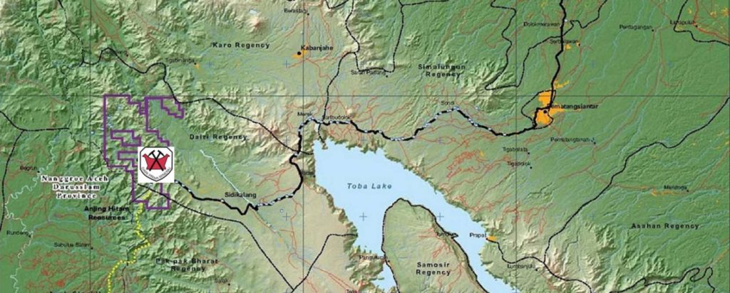 The Anjing Hitam deposit is located in the Sopokomil area around 25 kilometers WNW of the Dairi Regency’s main town of Sidikalang. Sidikalang is approximately 150km SSW of the provincial capital of Medan, Indonesia’s third largest city. Medan and Sidikalang are linked by a standard bitumen public road.